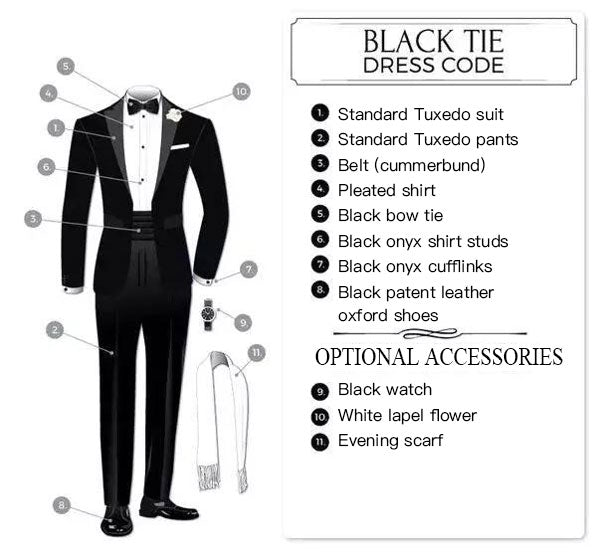 The above is the complete dress code of Balck Tie, in fact, it can also be summarized in a chart to understand.