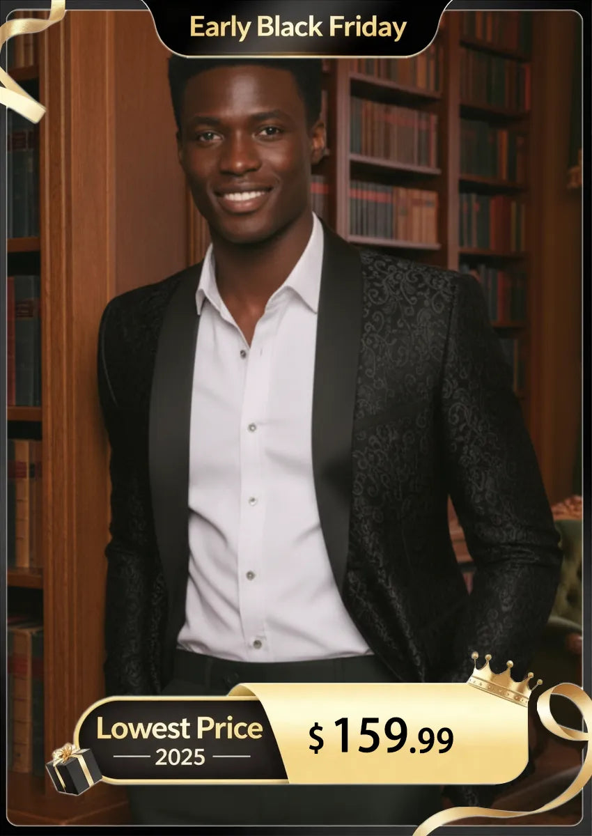 Men's 2-Piece Jacquard Embroidery Paisley Black Tuxedo