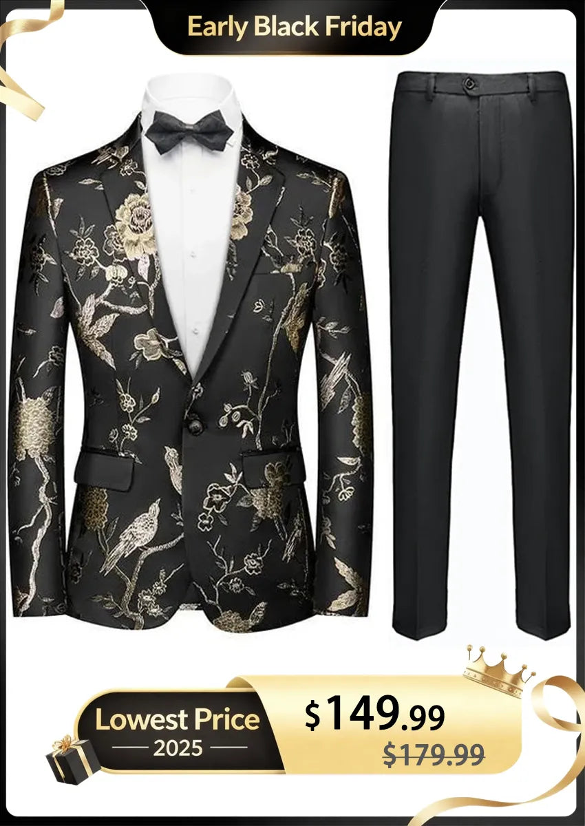 Men's 2-Piece Golden Birdsong Forest Embroidery Suit