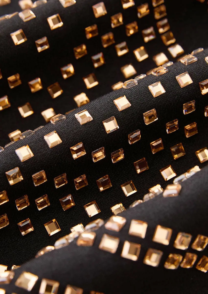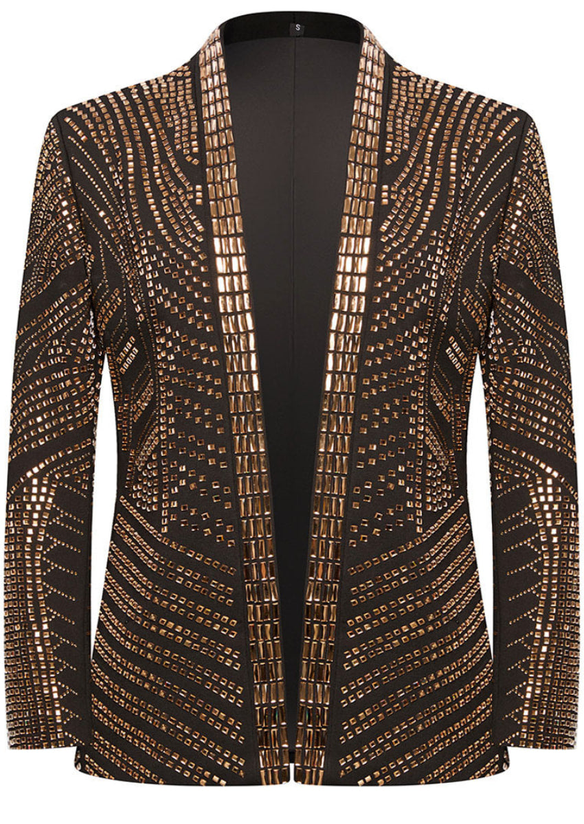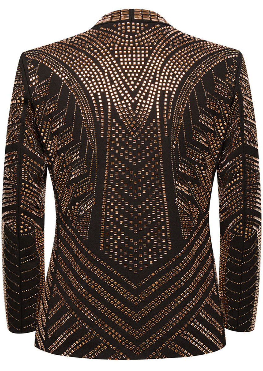 Men's 2-Piece luxurious Gold Full Diamond Black Dress Tuxedo