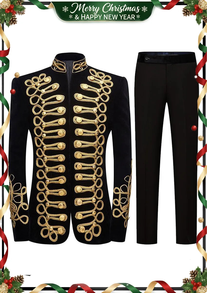 Men's Gold Aigillette Decorated Mandarin Collar Black Jacket