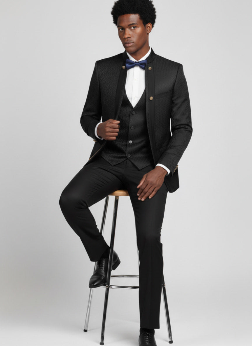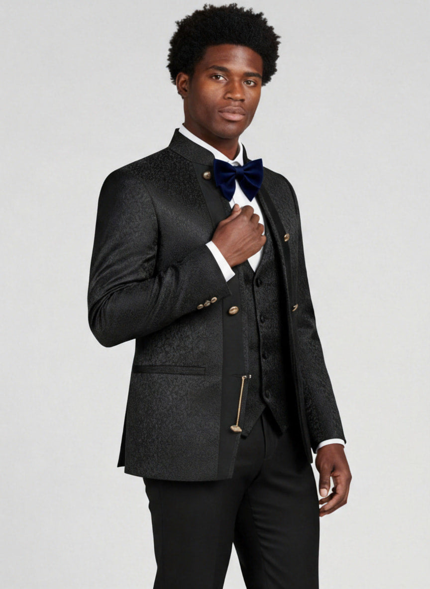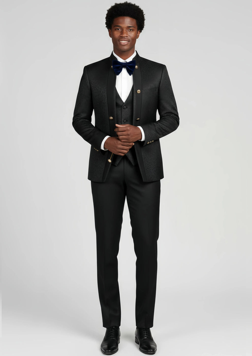 Men's 3-Piece Traditional Collar Black Paisley Fitted Party Tuxedo