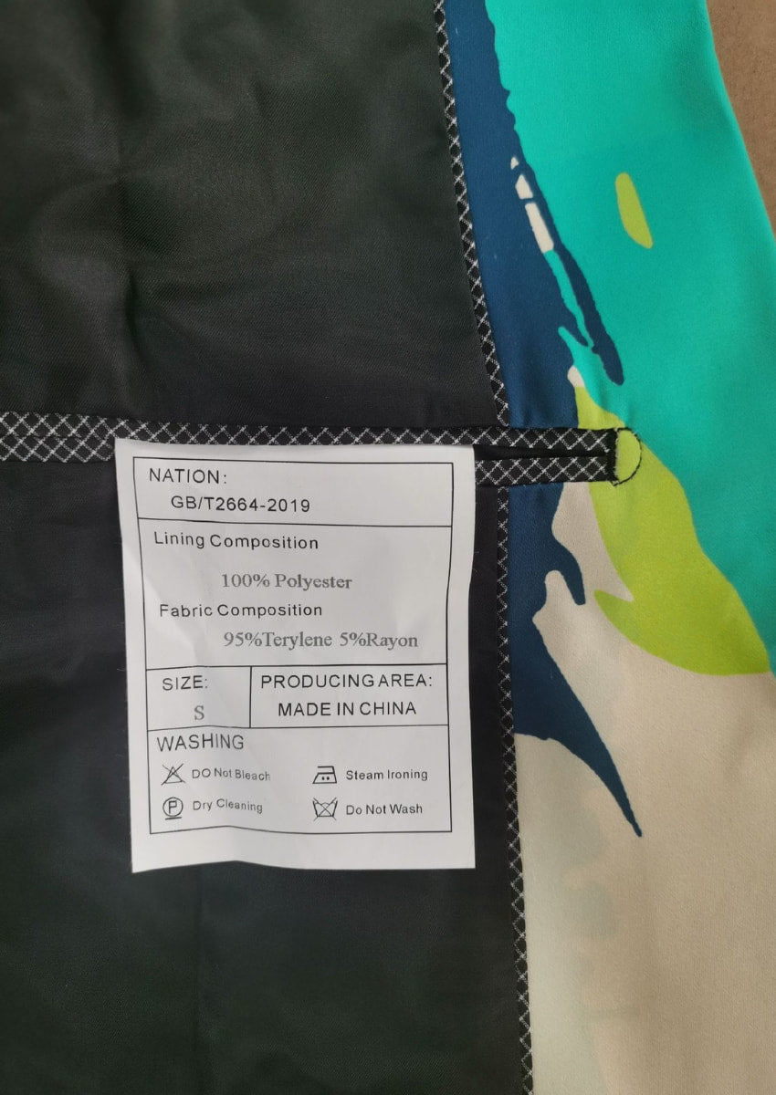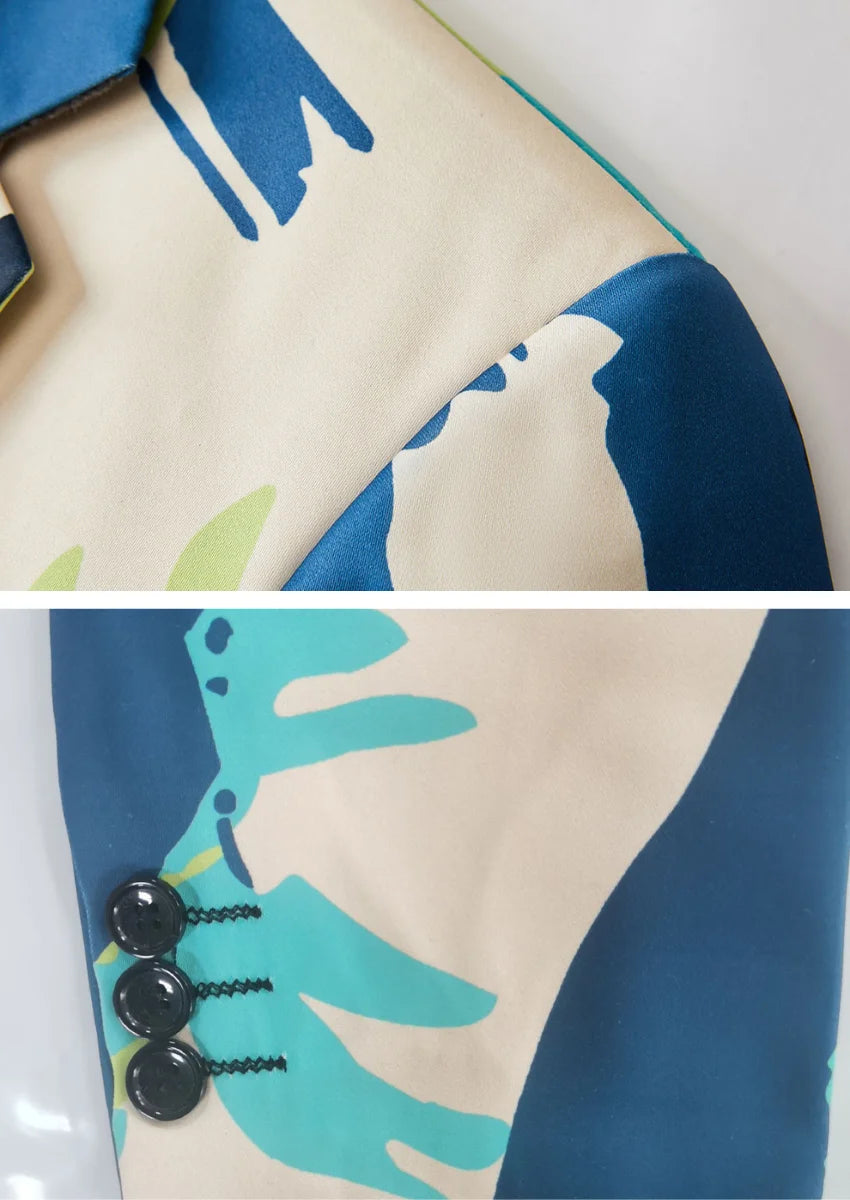 Men's Fashionable Blue Graffiti Print Beige Blazer
