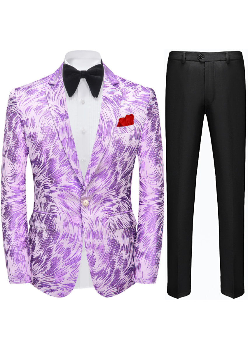 Men's Light Purple Feather Jacquard Tuxedo Jacket