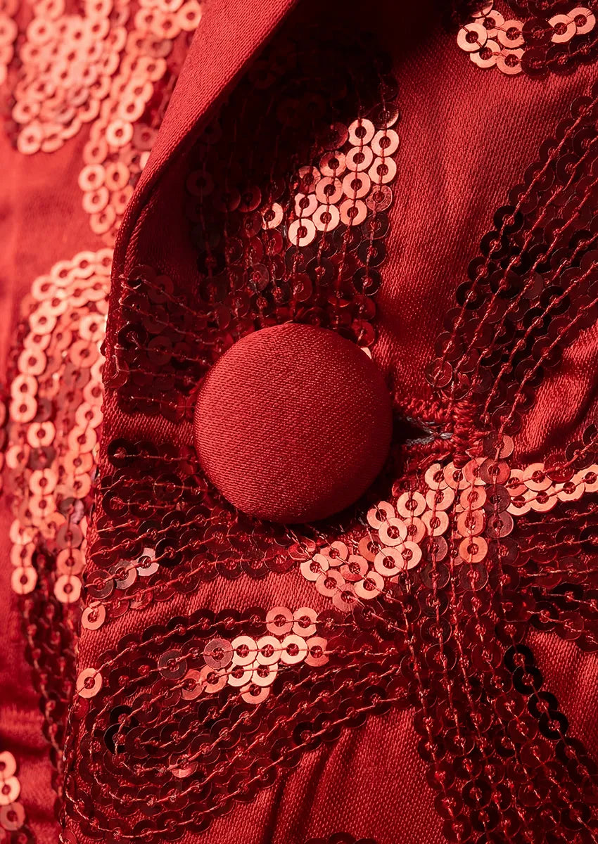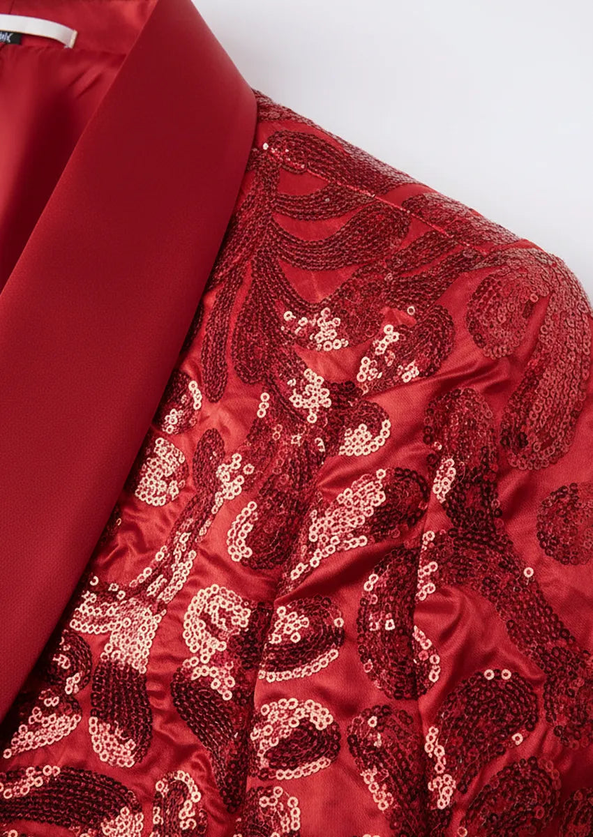 Men's Exquisite Shawl Lapel Floral Sequin Red Tuxedo