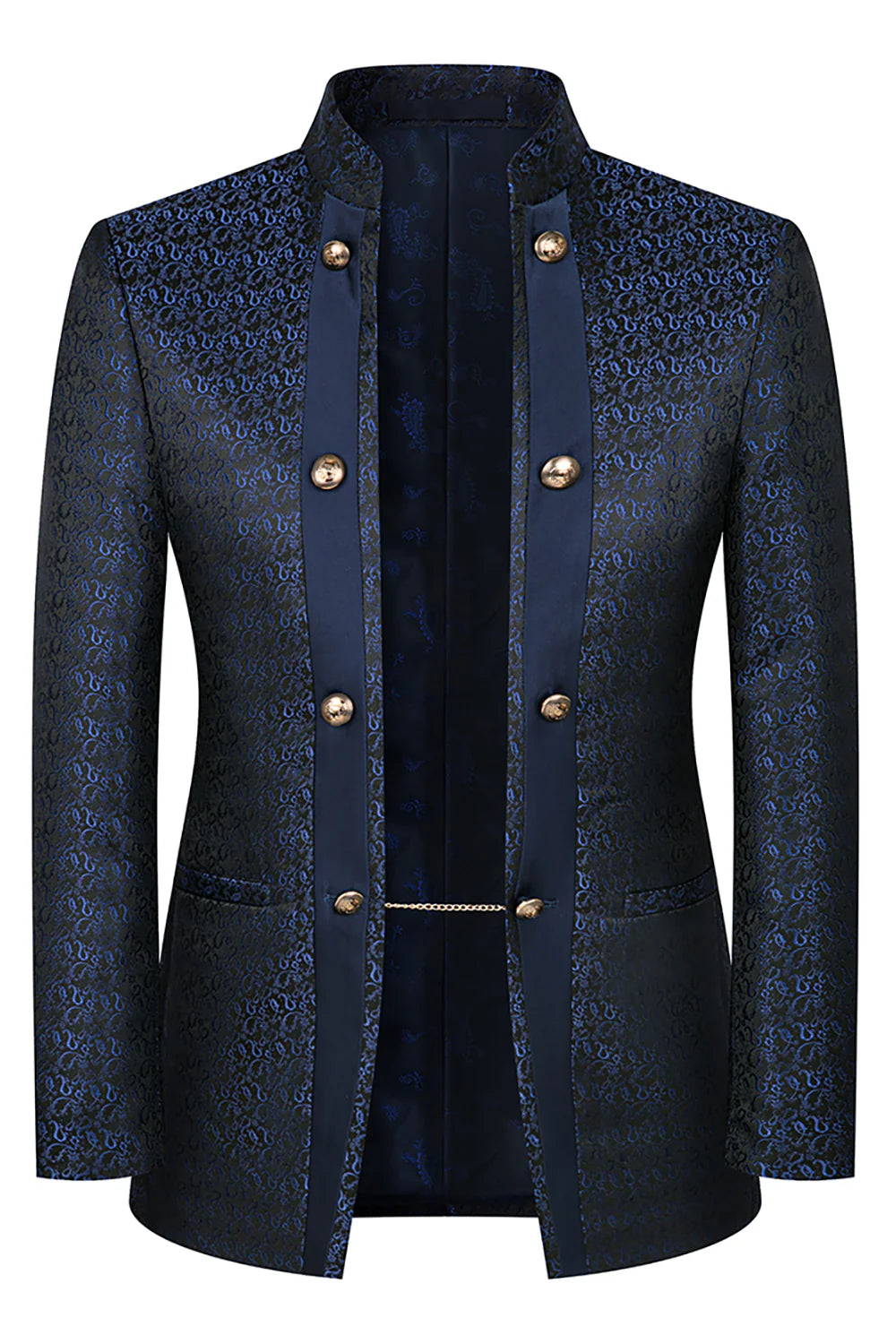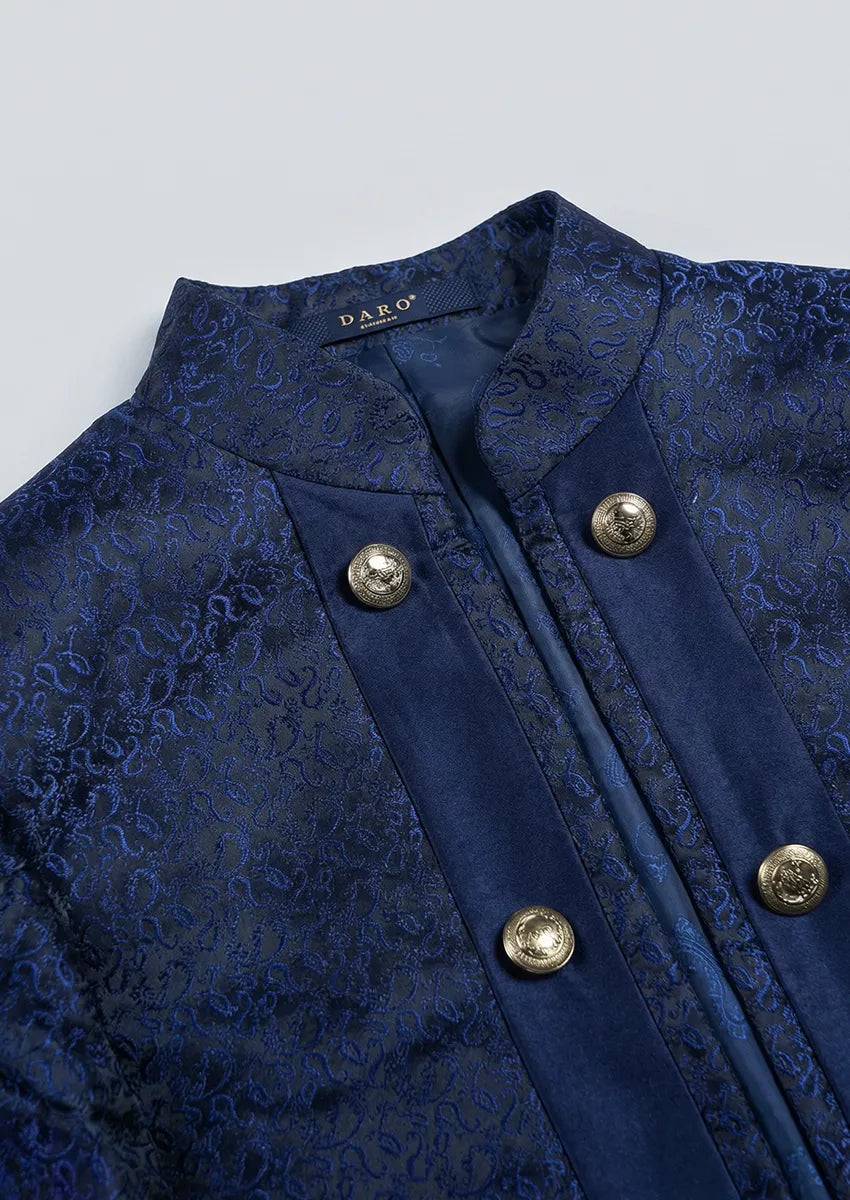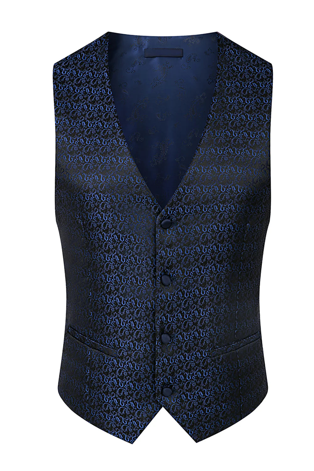 Men's 3-Piece Traditional Collar Navy Paisley Fitted Party Suit