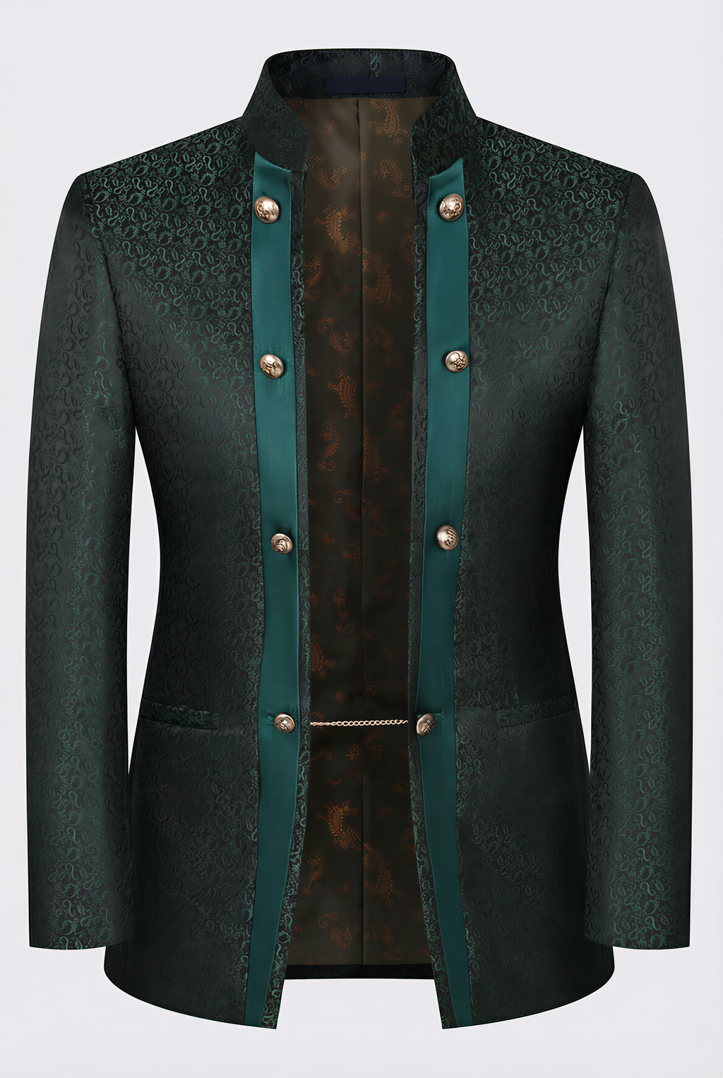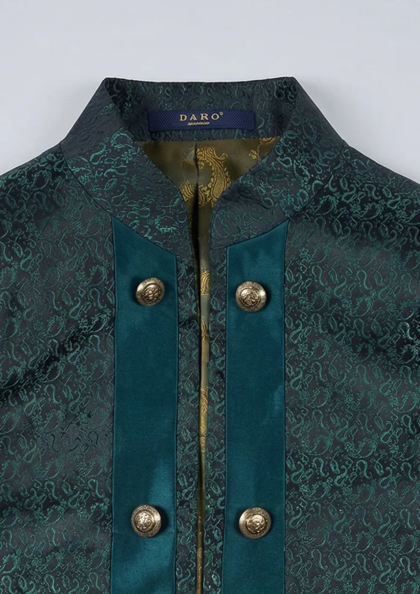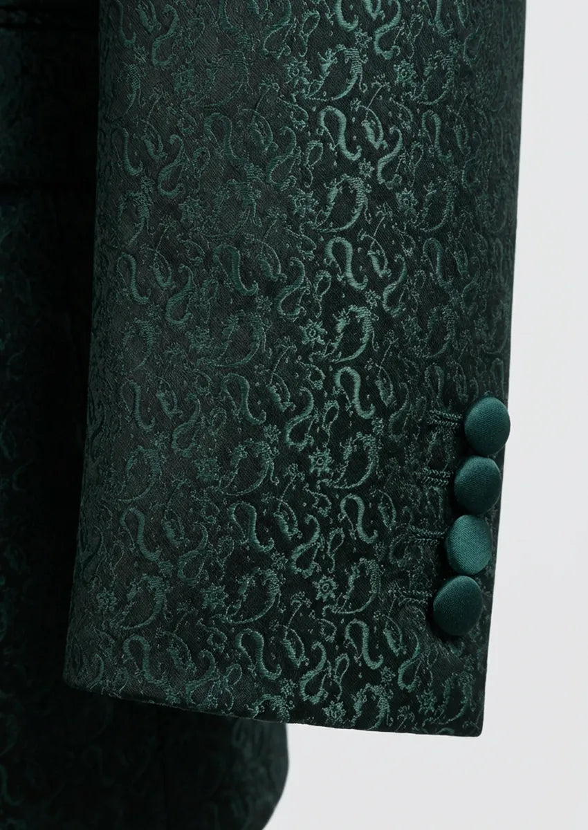 men's 3-Piece Traditional Collar Green Paisley Fitted Suit