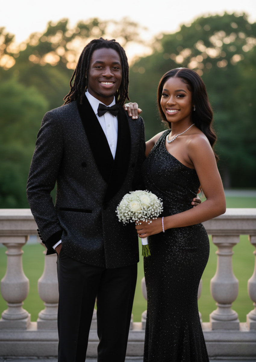 Men's 2-Piece Starry Black Smoking Shawl Collar Tuxedo