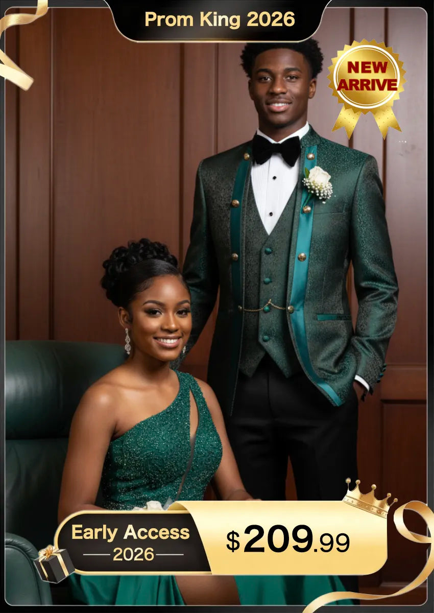 Traje de fiesta entallado de 3 piezas con cuello tradicional y estampado paisley verde para hombre