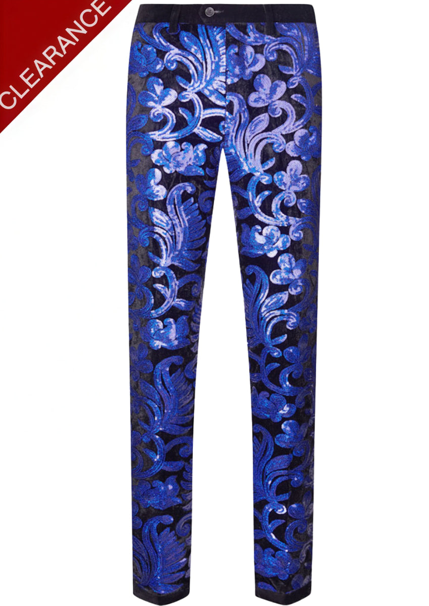 Pantalones bordados de lujo brillantes para hombre en azul