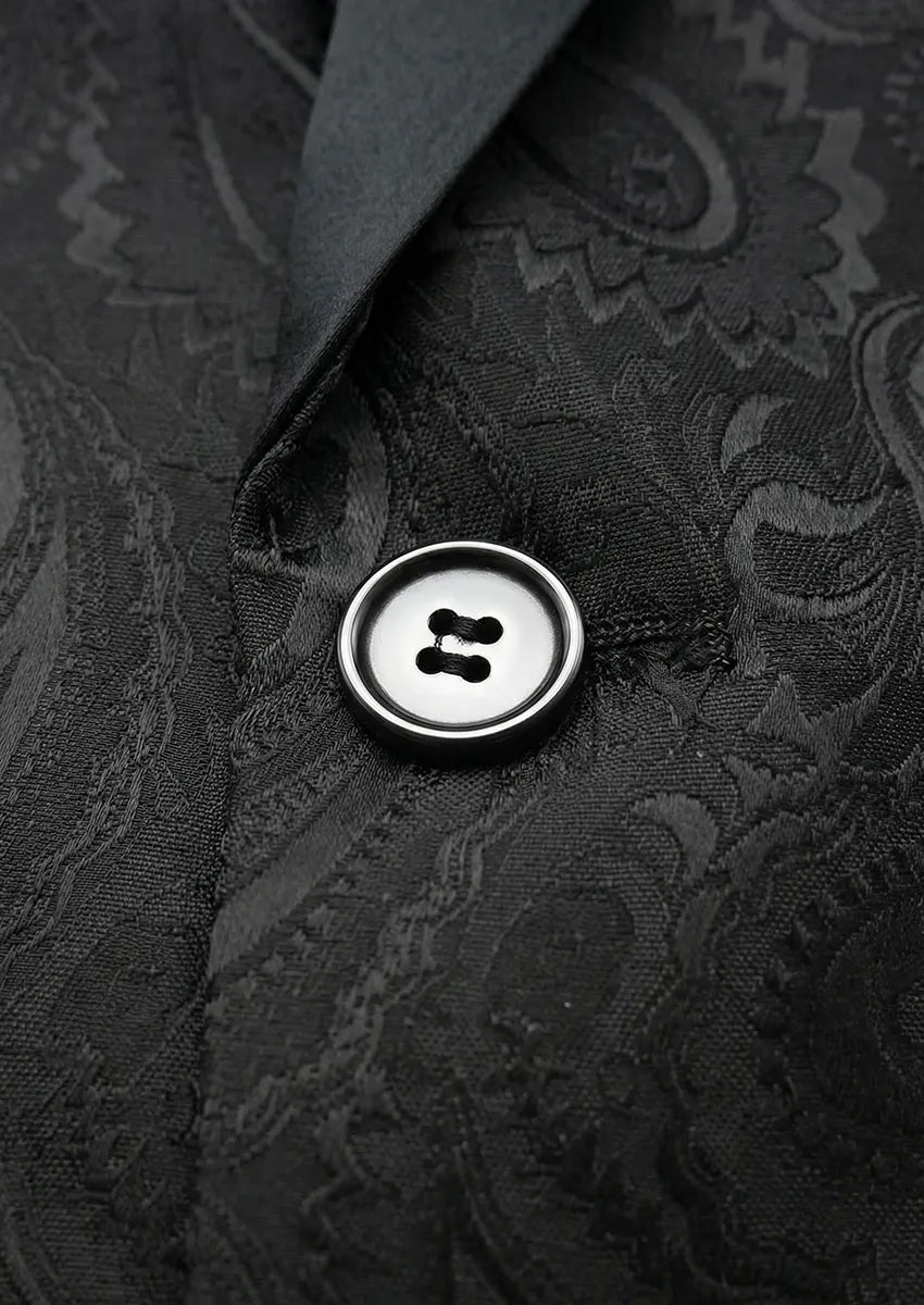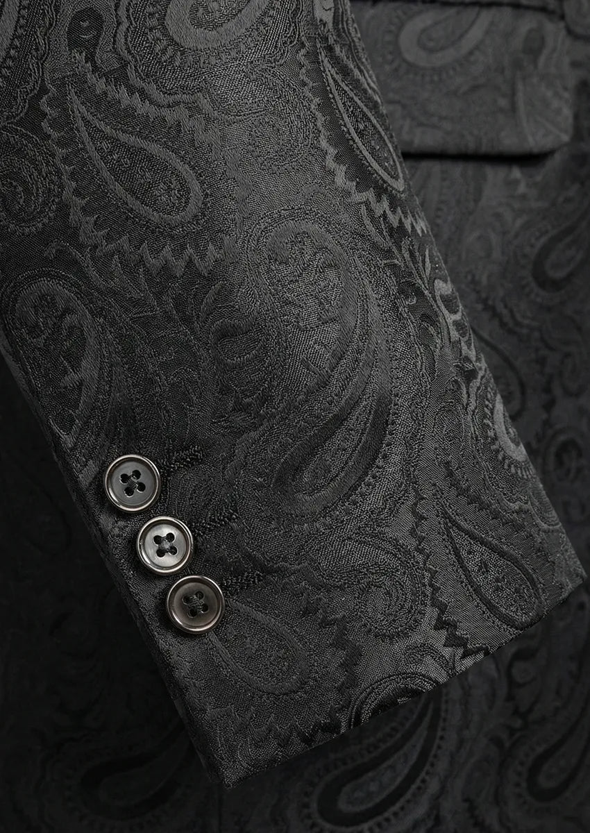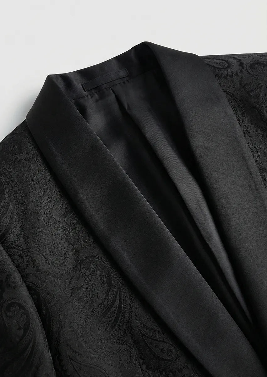 Chaqueta de esmoquin clásica negra con cuello chal y estampado paisley para hombre