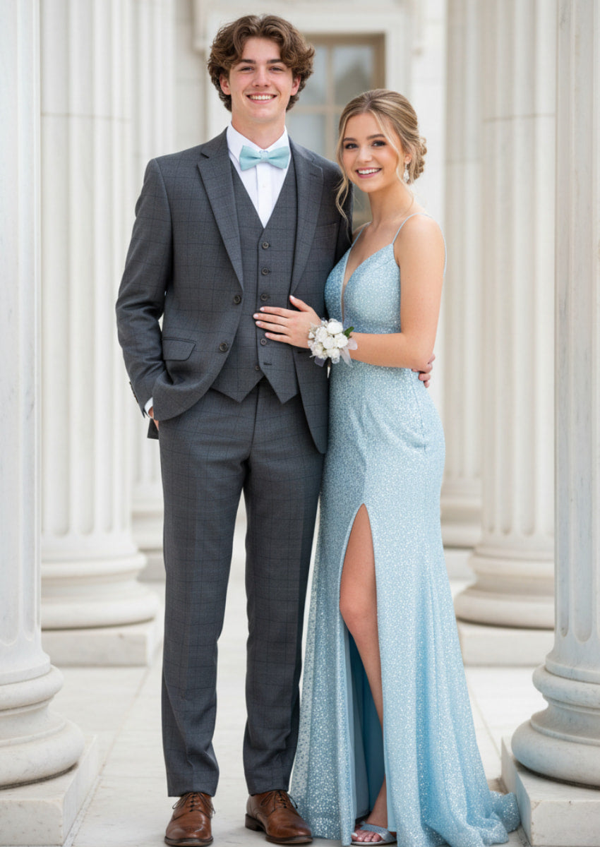 Traje gris de 3 piezas con diseño de cuadros escoceses y corte entallado para hombre