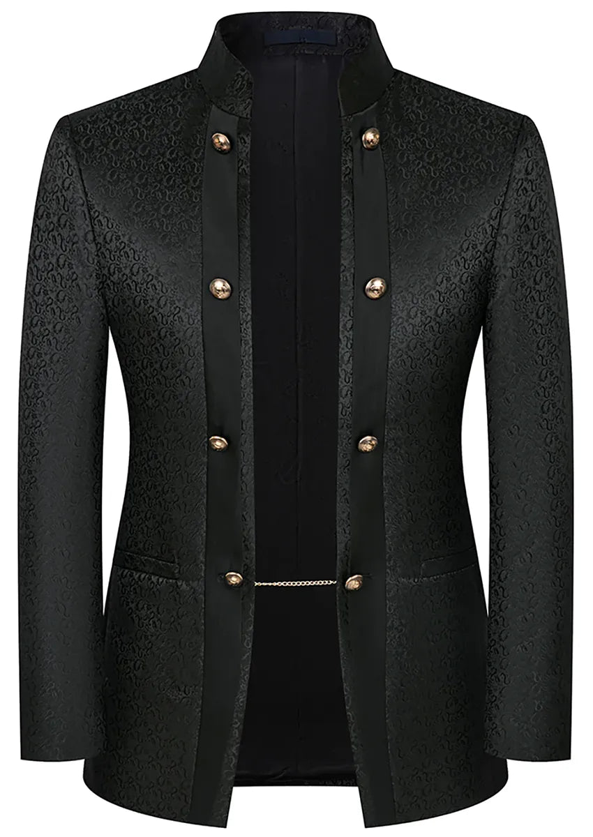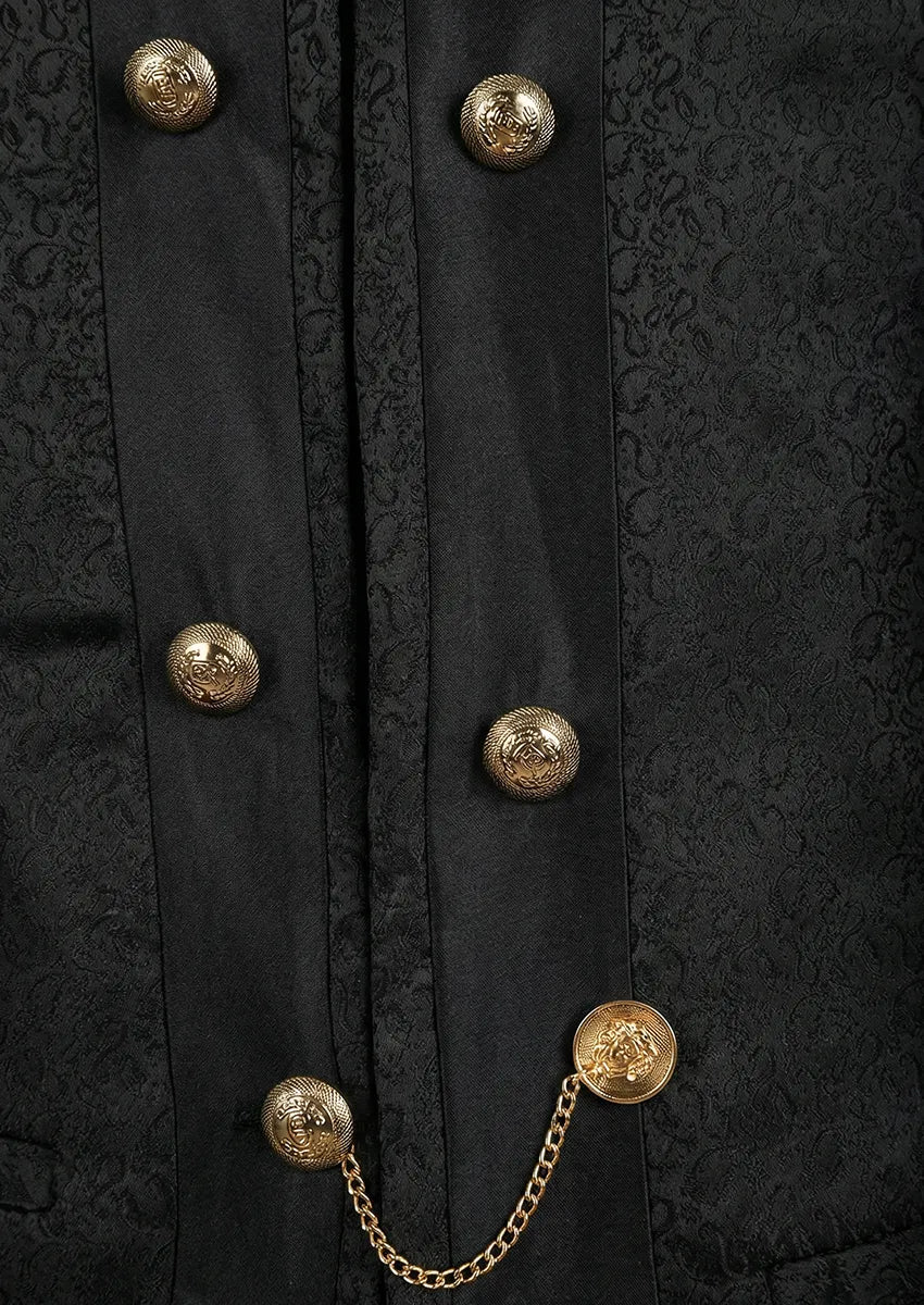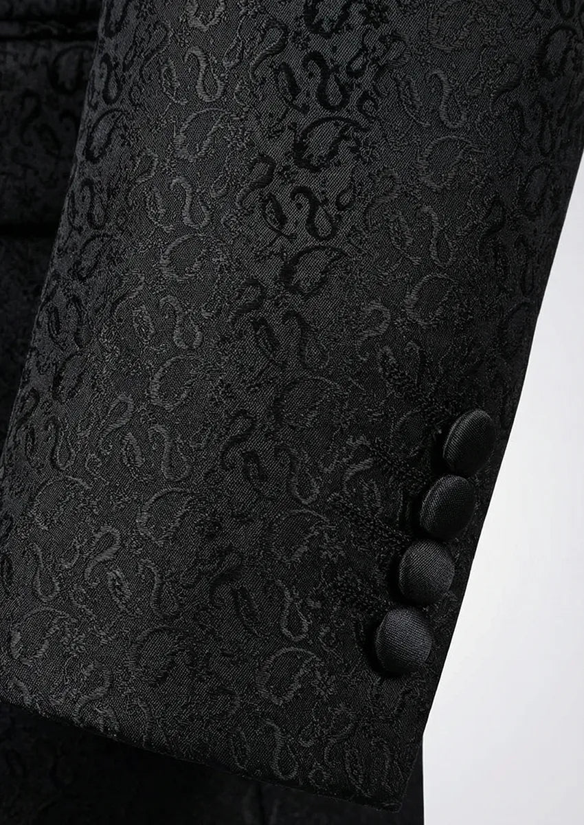Traje de fiesta de 3 piezas con cuello tradicional y estampado paisley negro para hombre