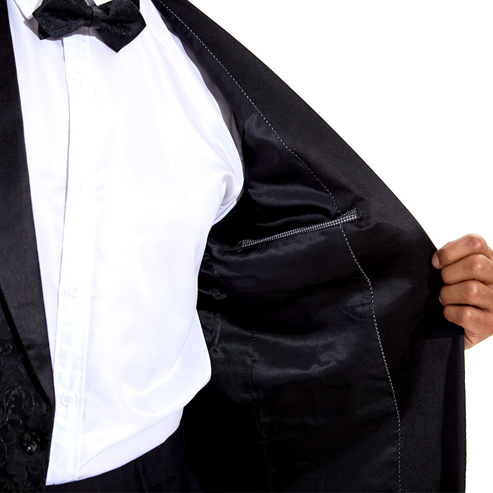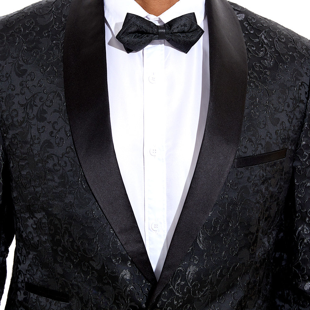 Traje negro de dos piezas con bordado de cachemira y jacquard para hombre