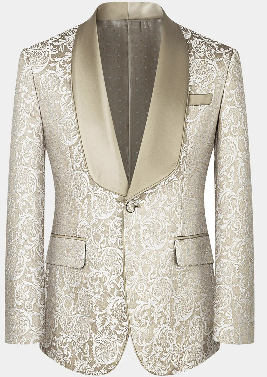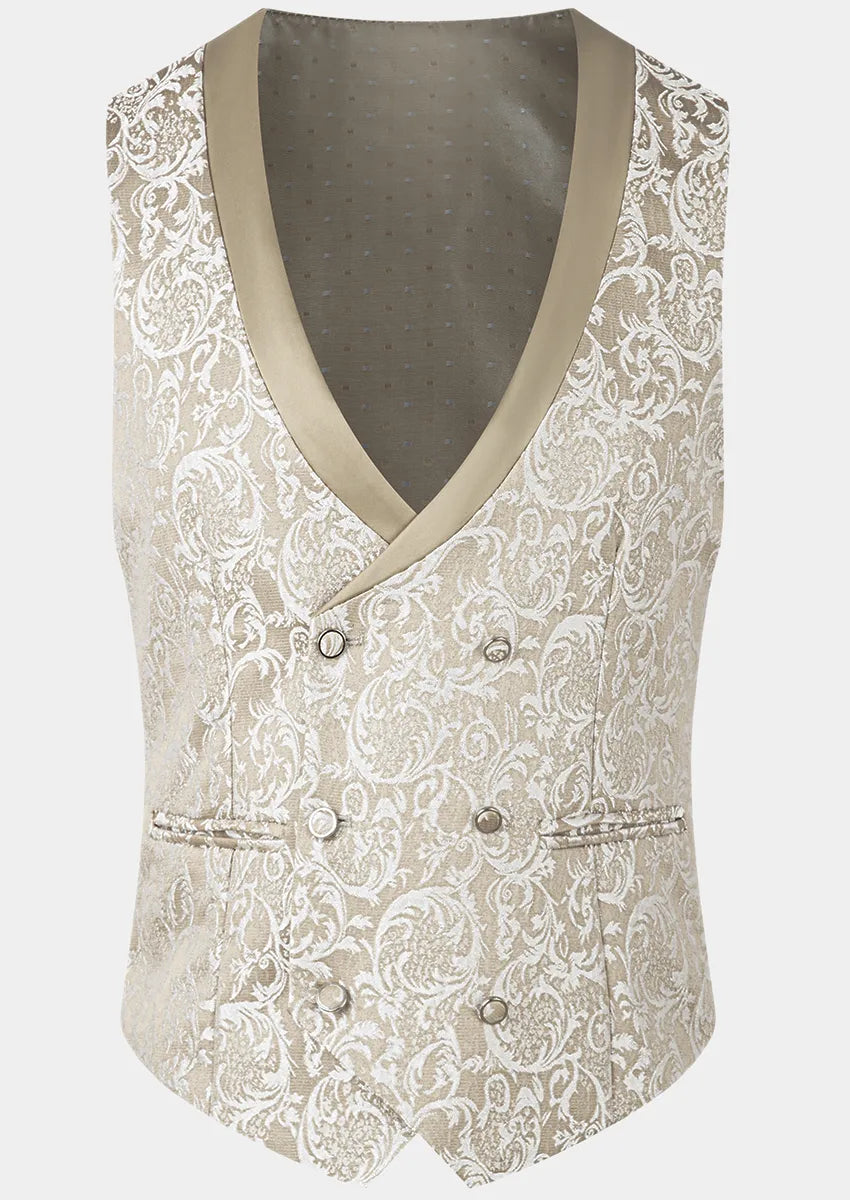 Traje de boda de 3 piezas para hombre en jacquard damasco color champán