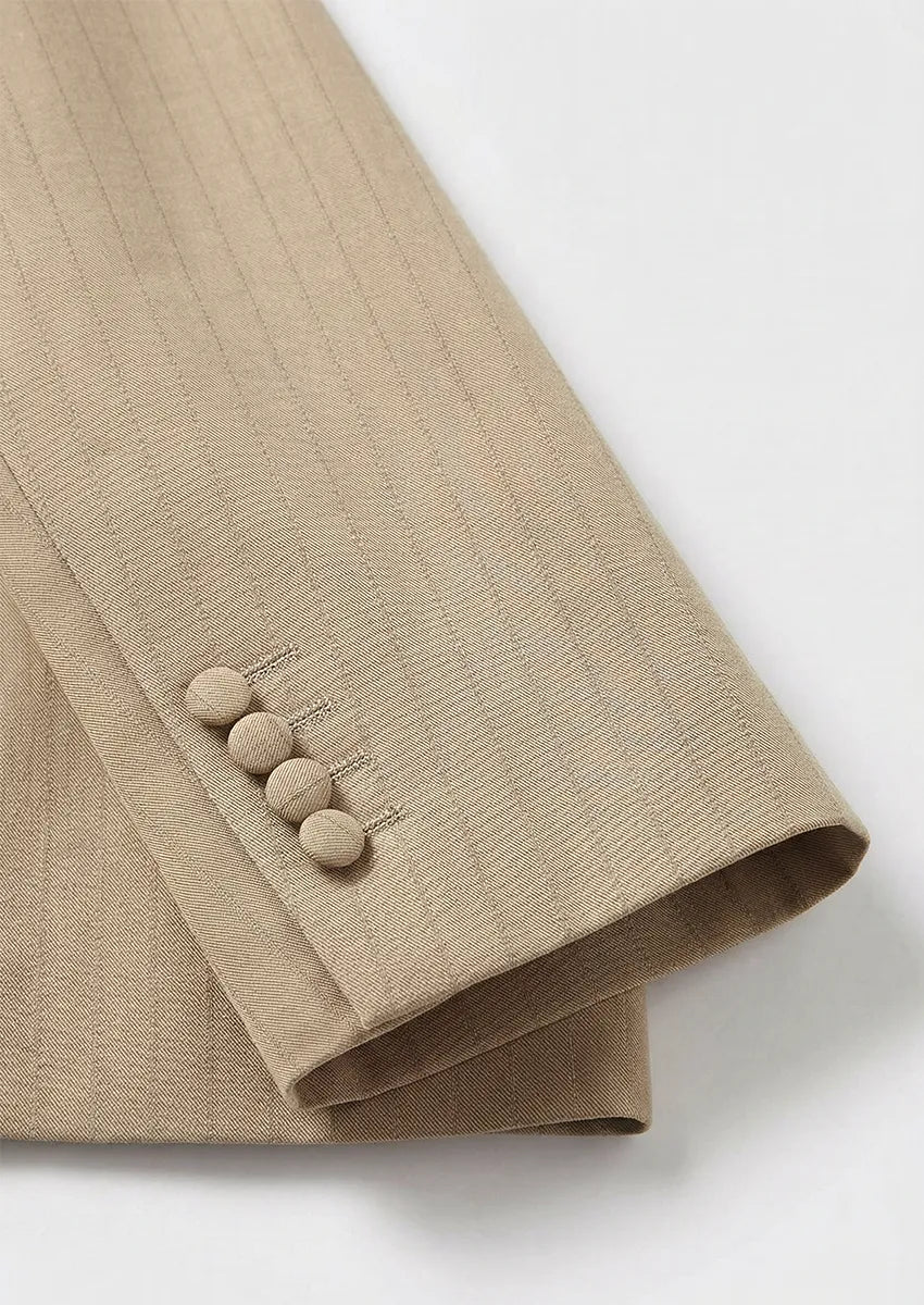Notre costume deux pièces champagne décontracté pour homme apportera une touche d'élégance à votre tenue décontractée. Ce costume contemporain, à la fois sophistiqué et décontracté, s'adapte à de nombreuses situations. Confectionné en coton respirant et confortable, il est doté d'un col distinctif orné d'une délicate rayure décorative qui lui confère une touche de modernité. Sa coupe déstructurée offre une grande liberté de mouvement et un confort optimal. Ce costume champagne décontracté est une option polyvalente et tendance, que vous alliez à une soirée décontractée, à une réception estivale ou que vous souhaitiez simplement rehausser votre tenue habituelle. Pour une allure plus décontractée, associez-le à des baskets et un t-shirt blanc ; pour une allure plus habillée, optez pour une chemise à col et des mocassins. Portez ce costume champagne décontracté classique pour un équilibre parfait entre confort et style.