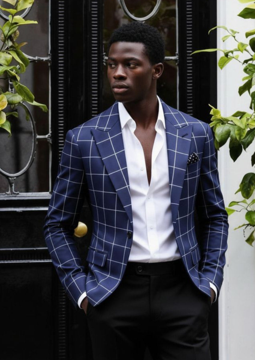 The essential piece for your timeless style is this adaptable navy plaid casual blazer.