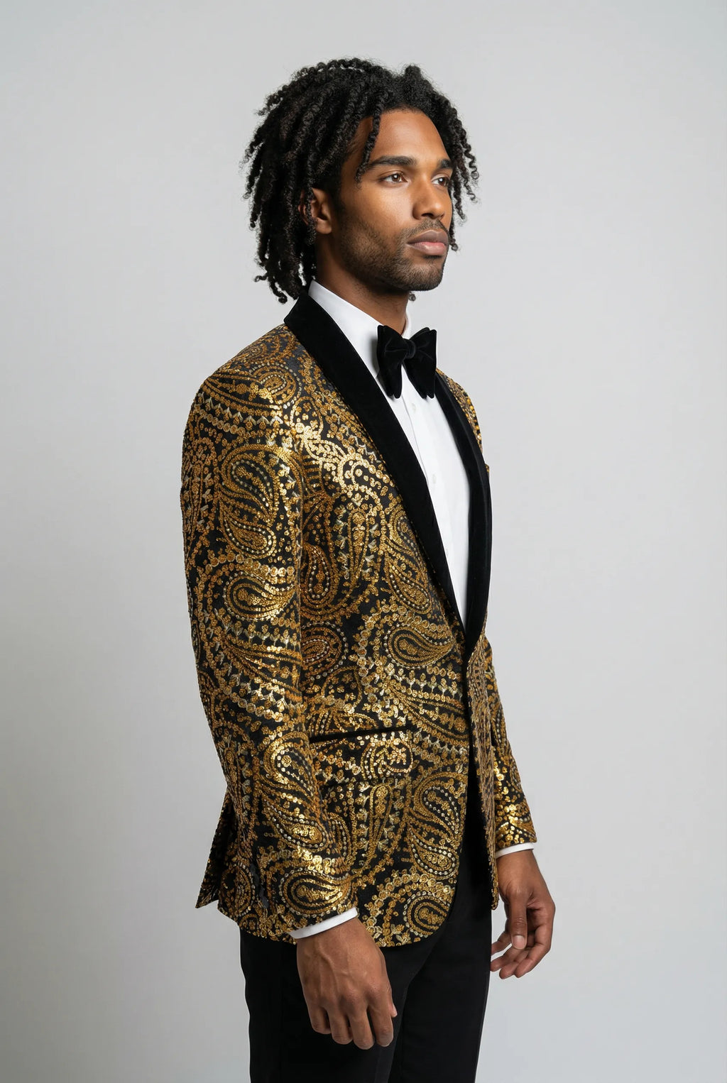 Men's Sequin Paisley Golden Tuxedo Jacket